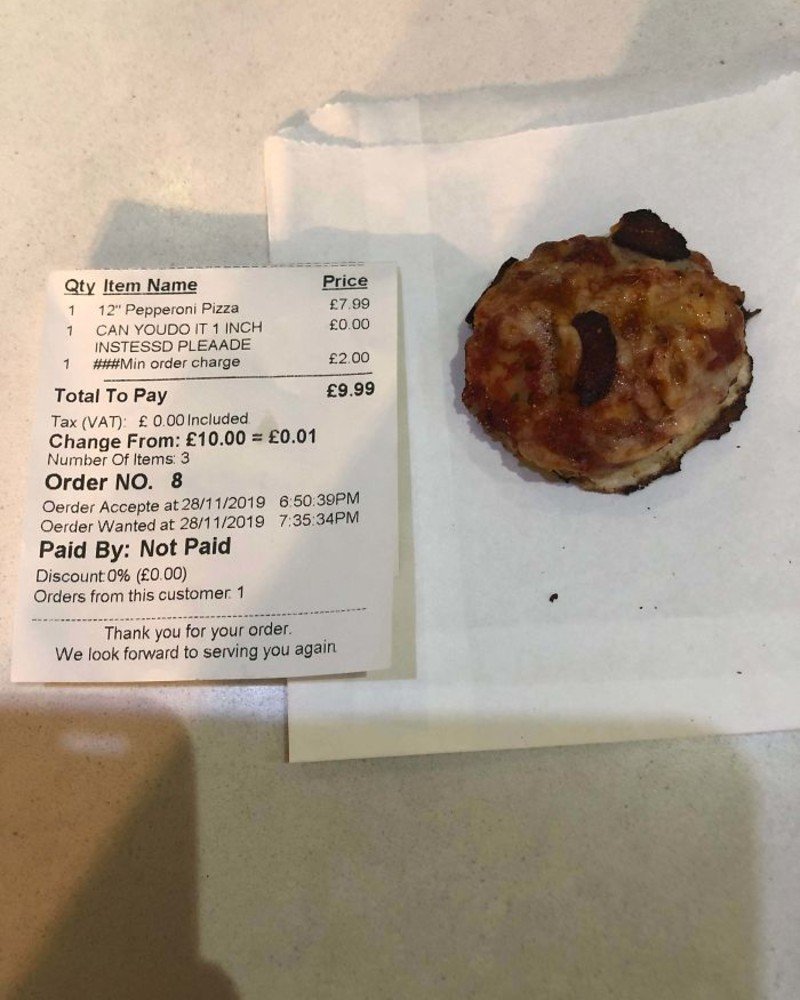 Delicious compliance is like malicious compliance, but with delicious food. Thus, when it comes to finger-licking comfort dishes, it is reasonable to expect the level of absurdity to increase tenfold. Not only does this leave you full, but it also makes you want to give food workers all the tips in the world. From asking for extra pepperoni and receiving so much you could build a pyramid to mistyping 10-inch pizza and getting a perfect 1-inch treat, here are 20 times people got exactly what they asked for.