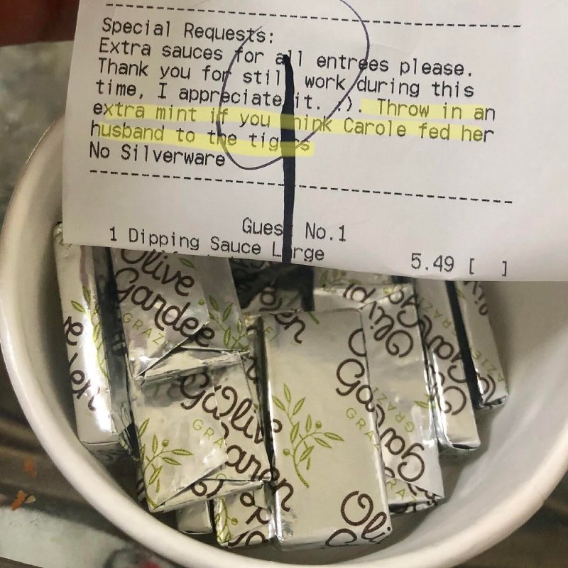 - Apparently, this Olive Garden employee enjoys conspiracy theories.
