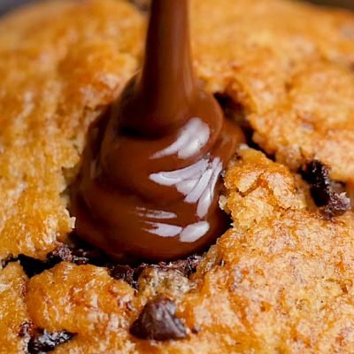 Pour chocolate chips with the rest of the milk (heat it in advance) and mix until the chocolate is melted. |