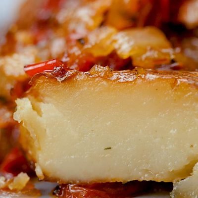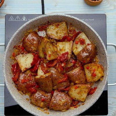 This is a very satisfying potato dish. Sun-dried tomatoes give it a unique taste, so do not replace them with fresh ones. A finishing touch is the right selection of spices: oregano, marjoram, and thyme work best.