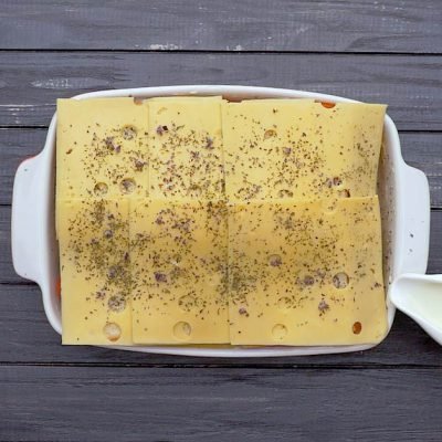 Carefully pour milk into the casserole. Bake for 10 minutes at 360 °F. |