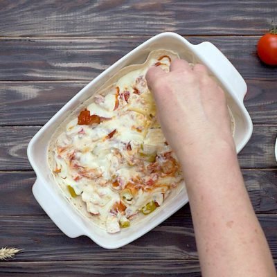 This tasty and filling tortilla chicken pie recipe is a quick casserole dish that only requires a little preparation. The lip-smacking pie is made with tortillas, rotisserie chicken, and cheese. It is especially delicious topped with sour cream, fresh lime, tomatoes, and cilantro.
