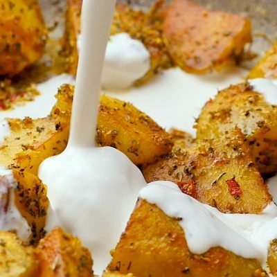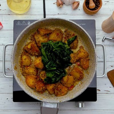 Potatoes form the basis of the whole dish. The cream sauce provides tenderness, spices, garlic, and chili pepper add piquancy, but spinach gives a unique taste to the whole treat.