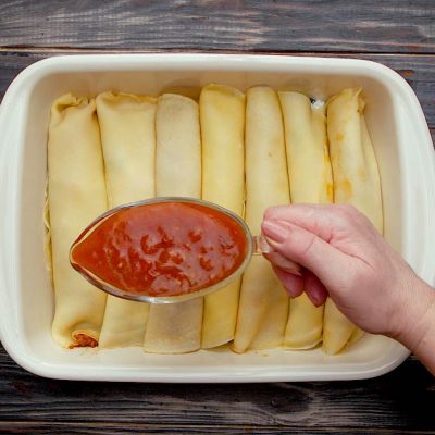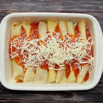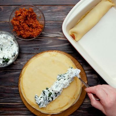 Bright, juicy, satisfying, and fantastically tender, this two-flavor crepe casserole is somewhat similar to cannelloni yet even more delicate. The fillings are also very unique: spicy spinach with ricotta and meat bolognese. This majestic tandem will definitely delight you; although the tastes are very different, together they create an exceptional ensemble.